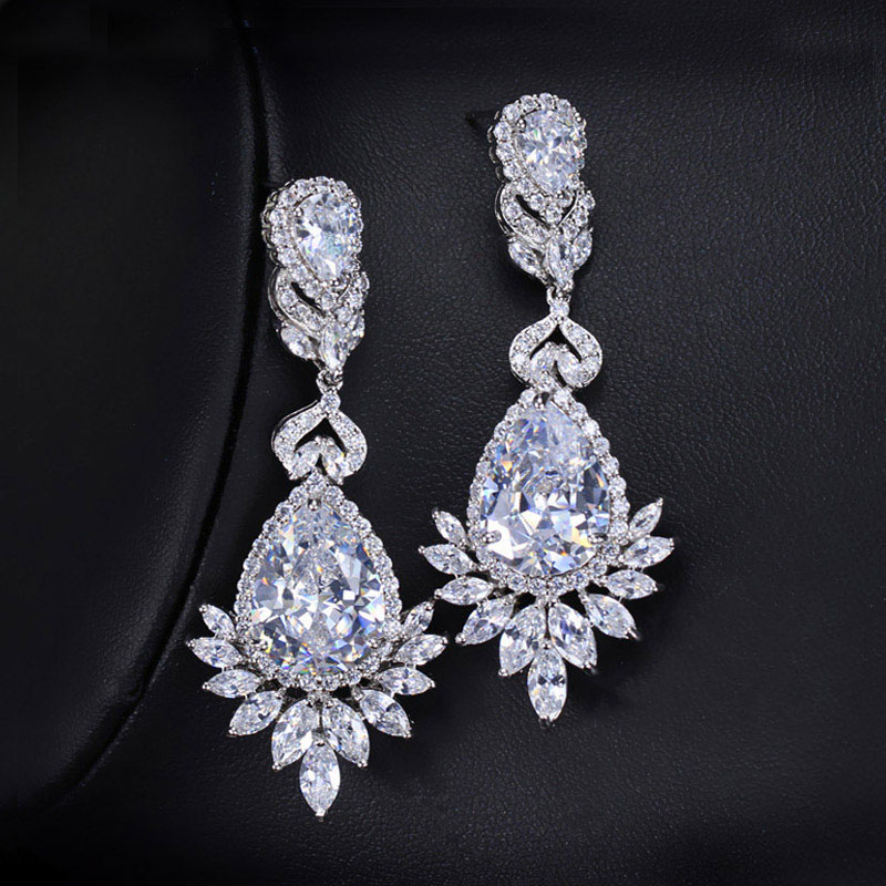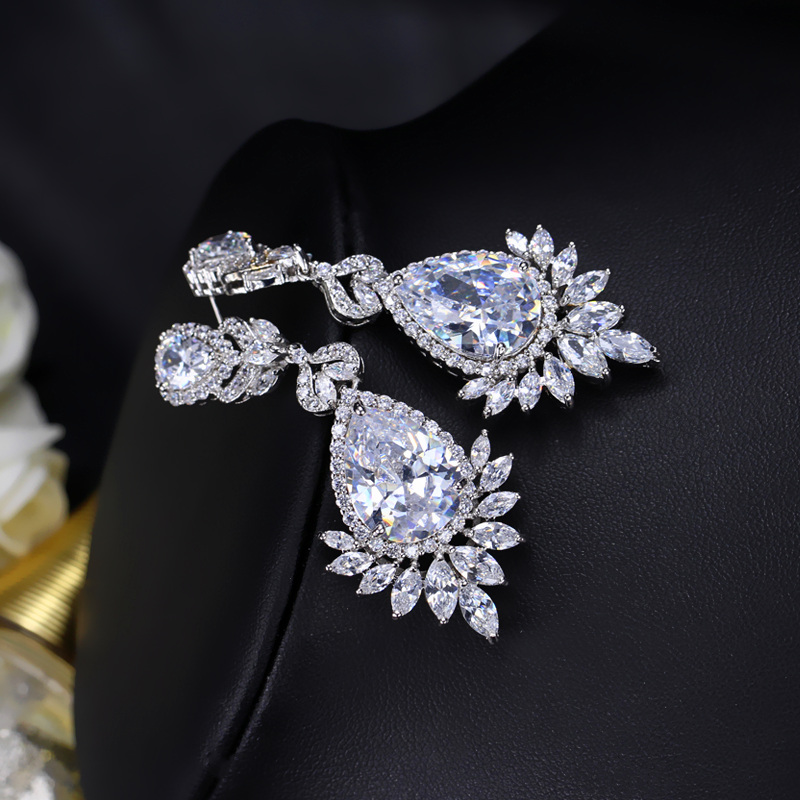 Stunning 2piece Statement drop earrings, set with Cubic Zirconia. 5.6 cm long,