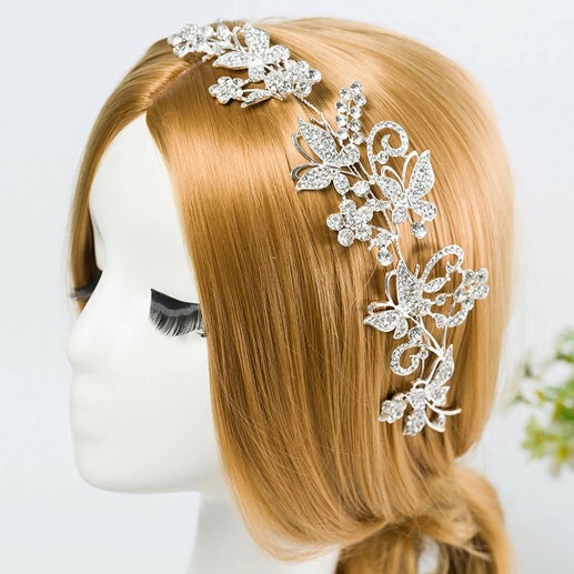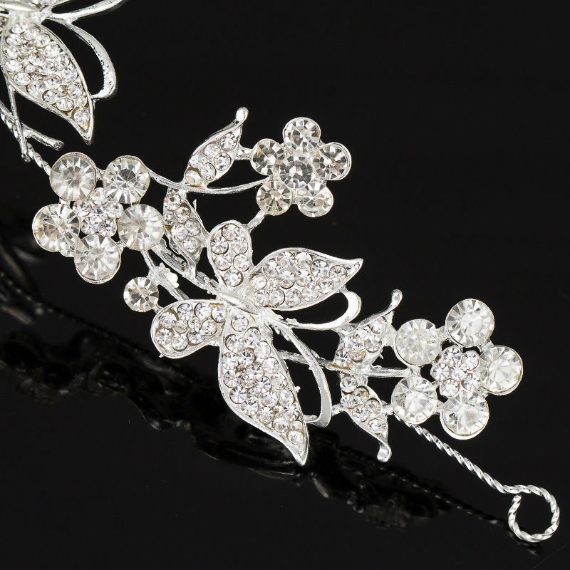 Butterfly Flower flexible Tiara Headband Crystal Hair Vine Tiara