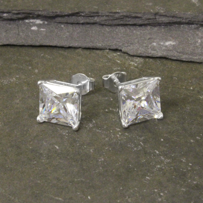 Sterling Silver square 7mm cubic zirconia stud earrings
