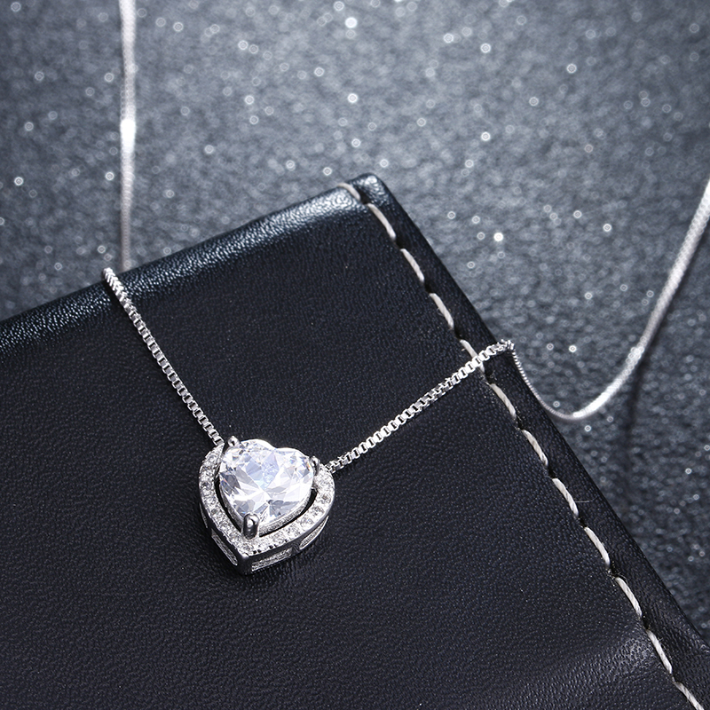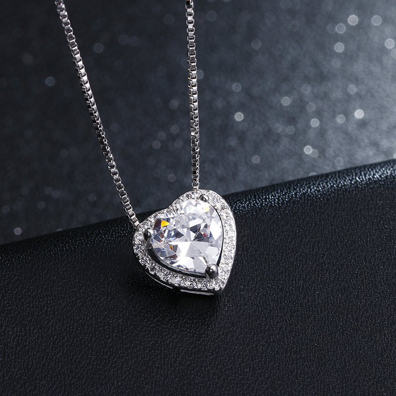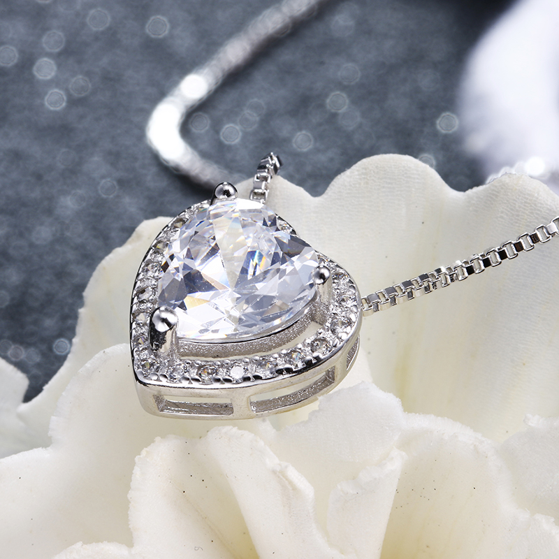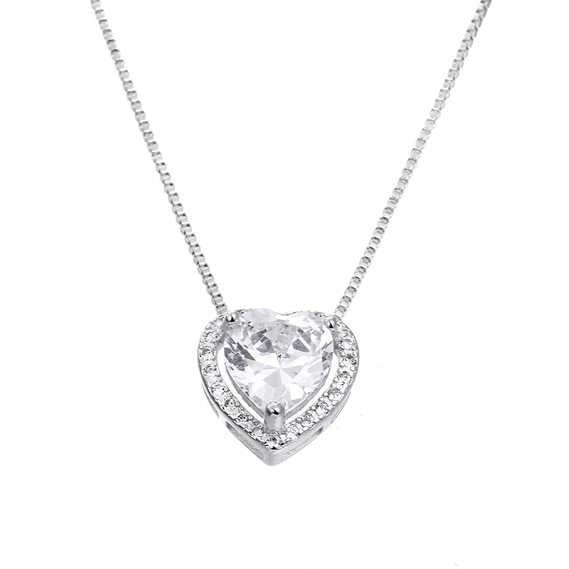 Sterling Silver 18” box chain , with a beautiful love heart pendant, set with a large heart shaped cubic zirconia, surrounded by smaller cubic zirconia stones.