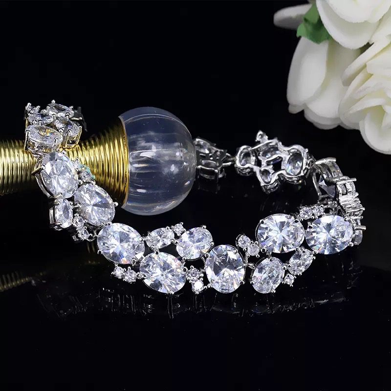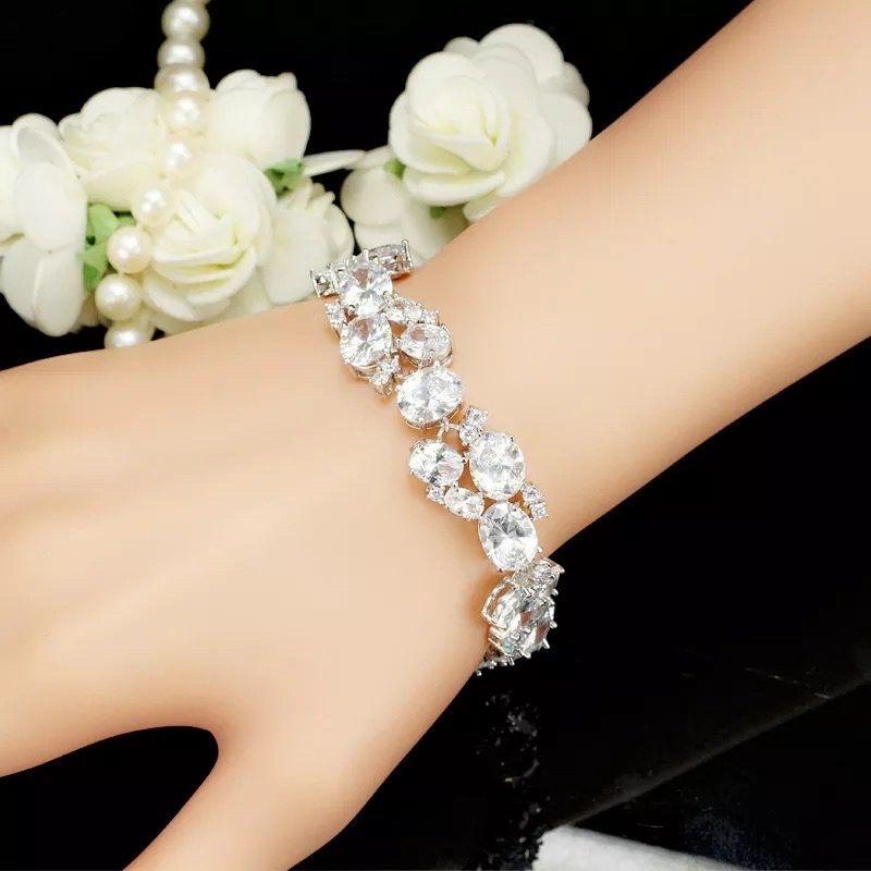 Stunning abstract shaped bracelet, set with cubic zirconia, various sizes.