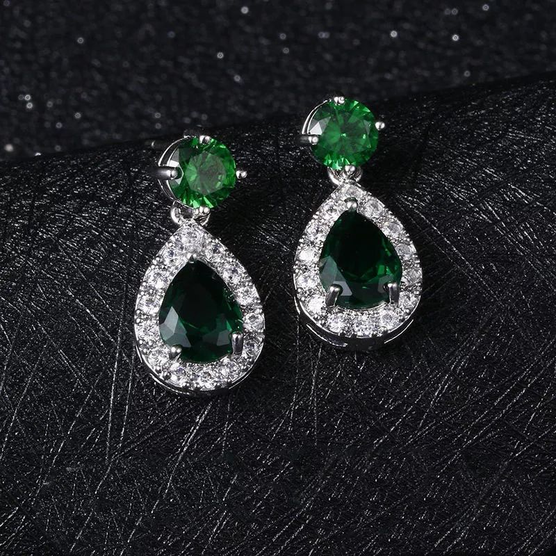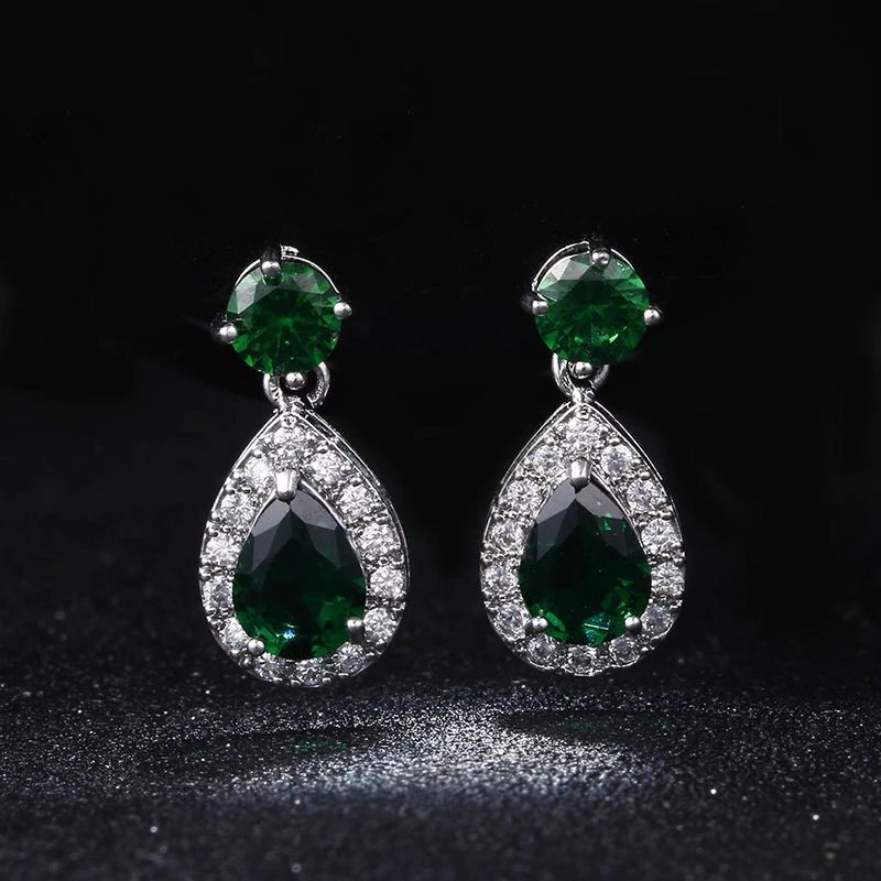 Stunning emerald and clear colour cubic zirconia Waterdrop drop halo earrings with butterfly backs.