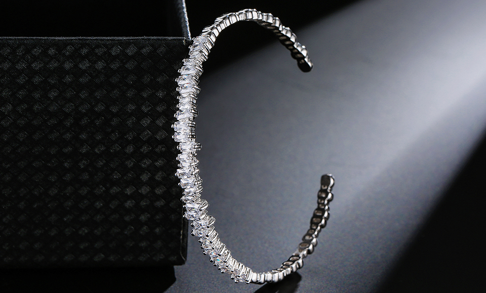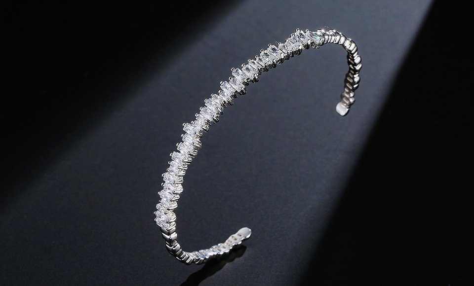 Adjustable cubic zirconia Baguette Cuff Bangle