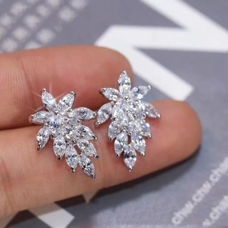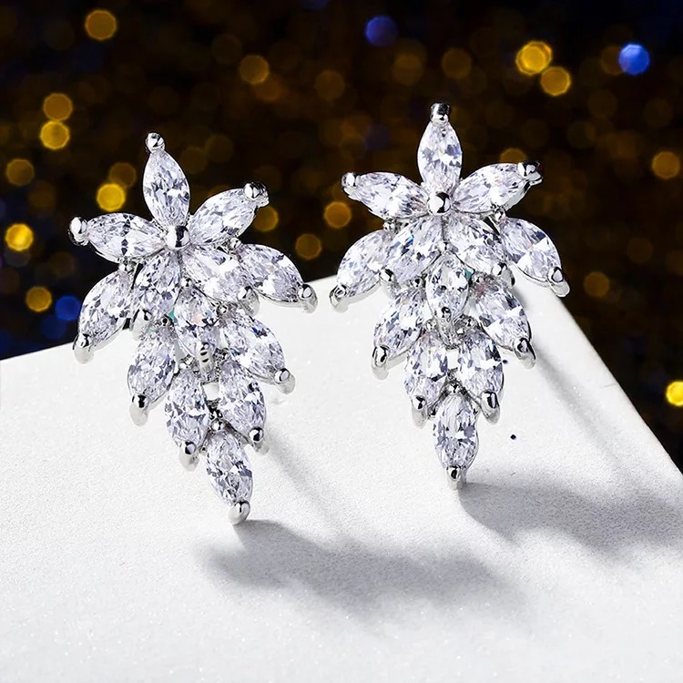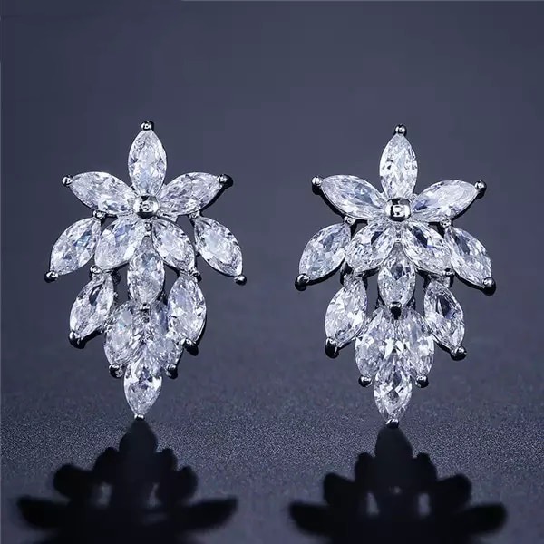 Beautiful cubic zirconia marquise leaf stud earrings .