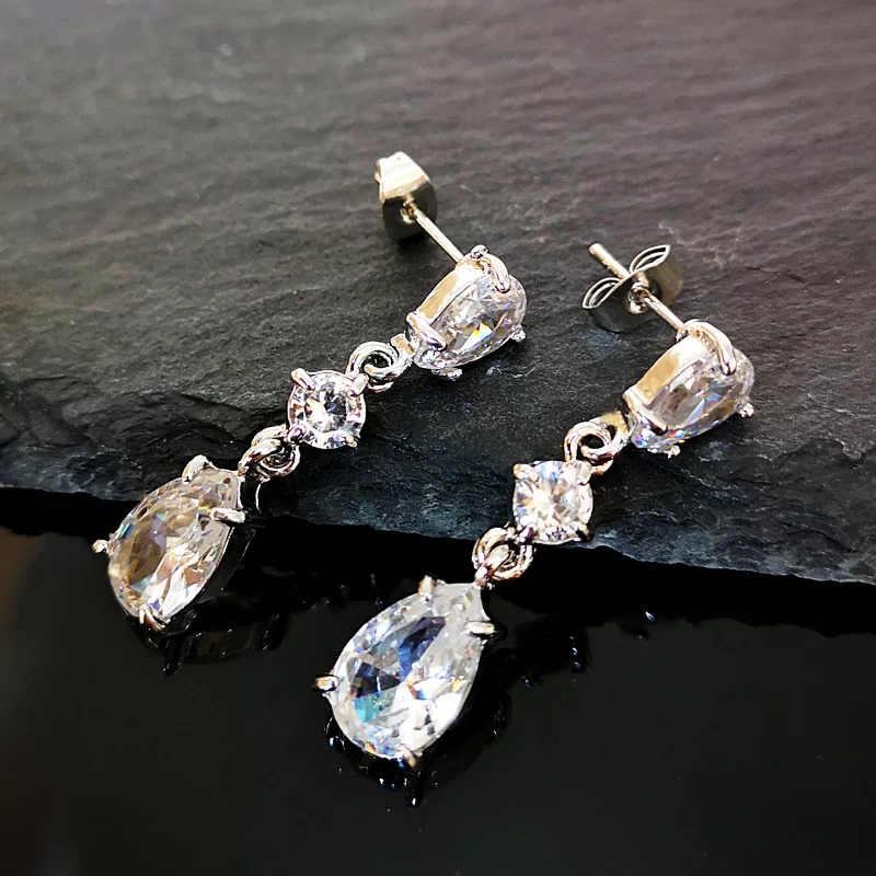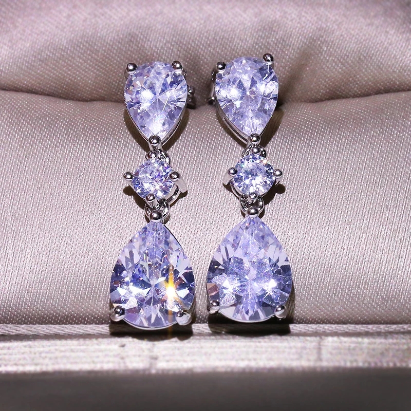 Stunning 3 drop Cubic Zirconia pear shaped earrings.