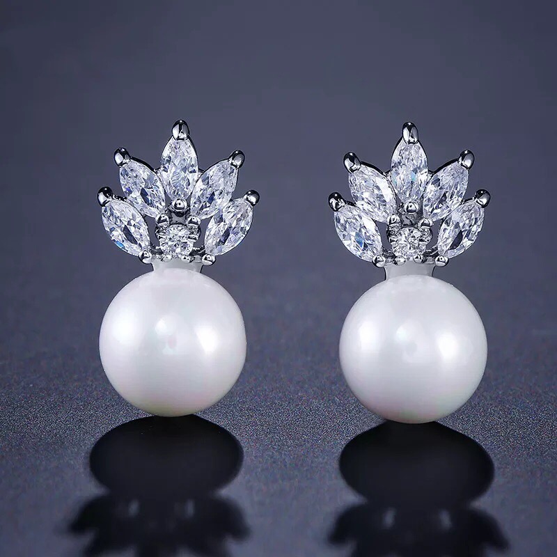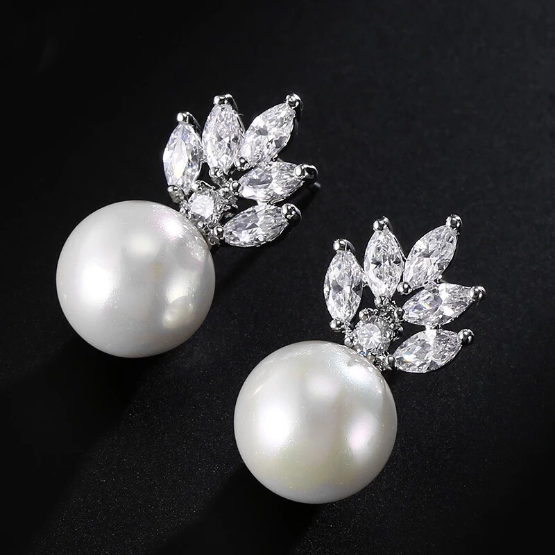 Exquisite marquise cut cubic zirconia stones, with pearls in a stud earring