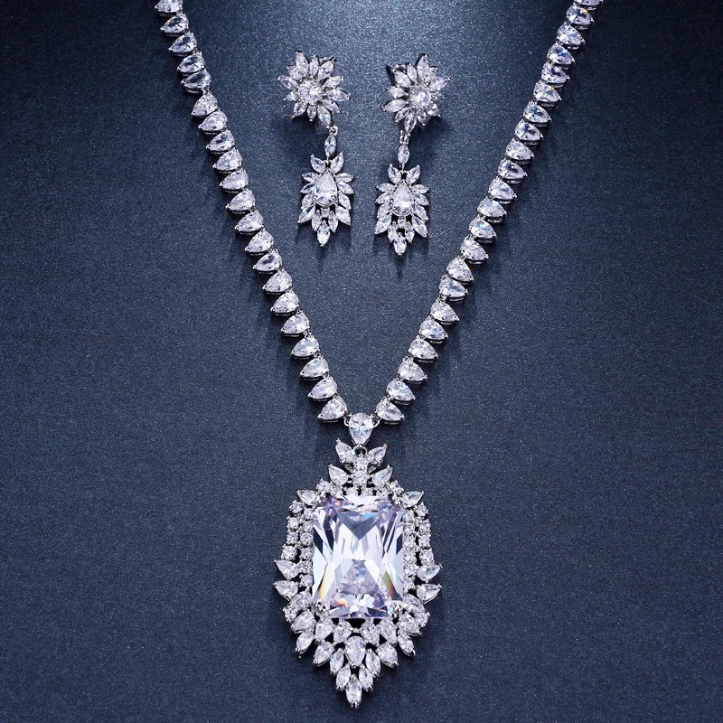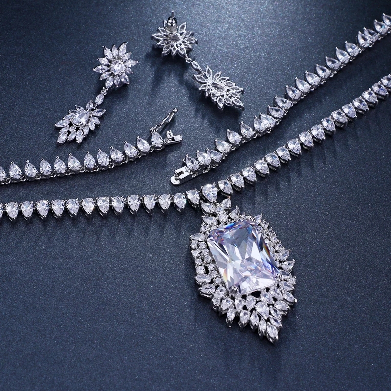 Stunning large emerald cut, and small pear cut Swiss Cubic Zirconia Diamond Necklace.