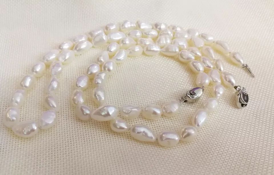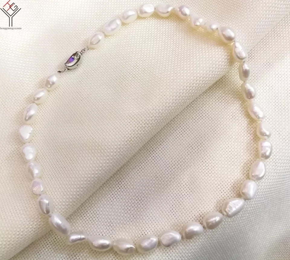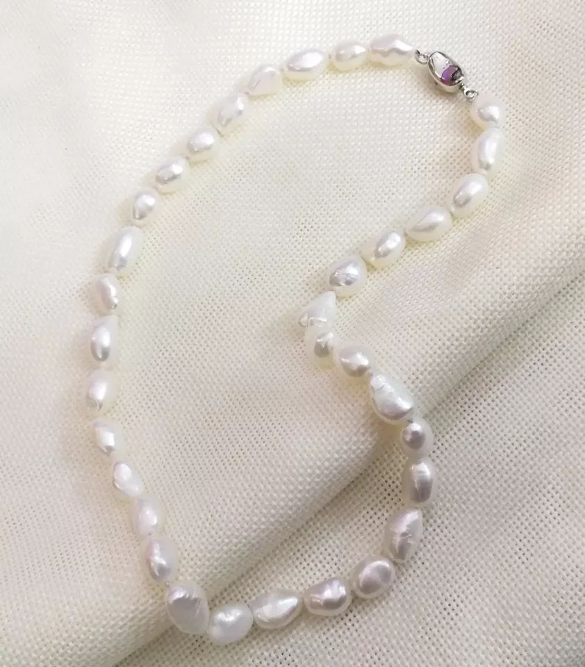 9x10mm white baroque natural freshwater pearl handmade necklace