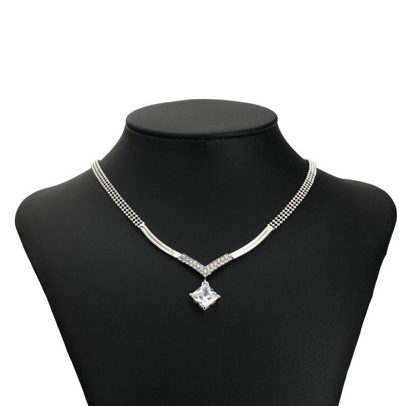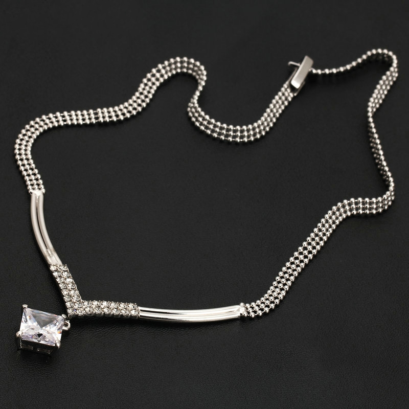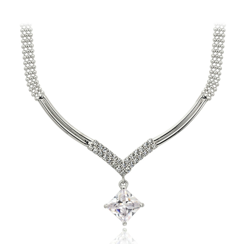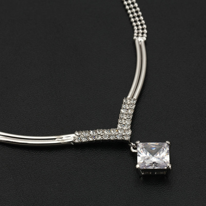 Platinum square CZ stone Pendant. 16″