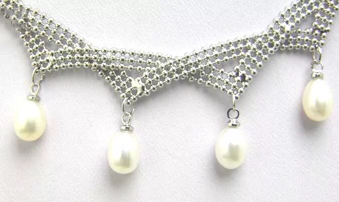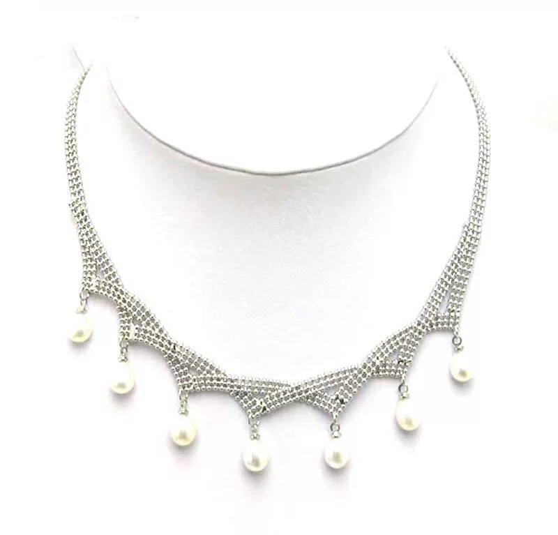 Stunning 18” white freshwater pearl necklace, with twisted singapore chain.