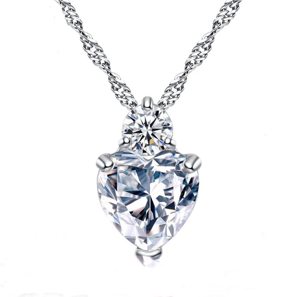Sterling Silver and cubic zirconia heart shaped pendant, on a 18” sterling silver singapore style chain.
