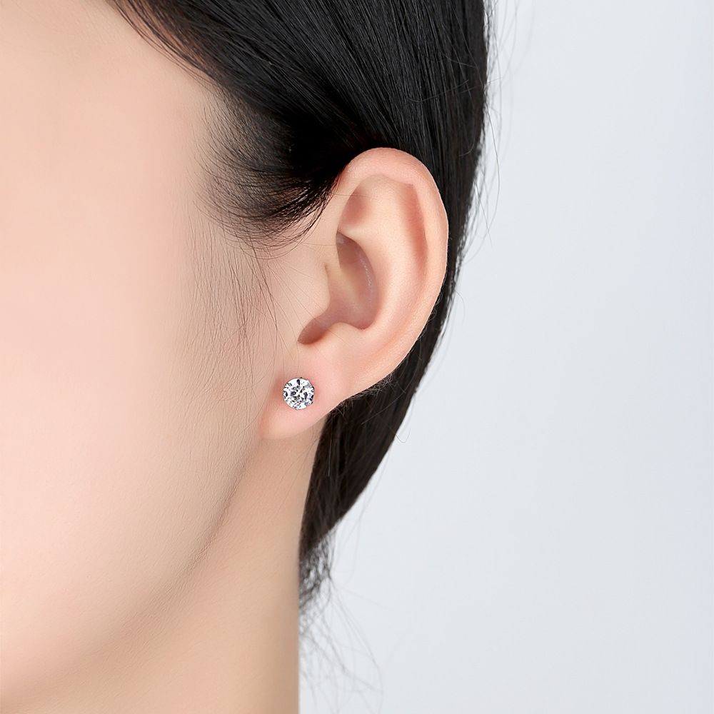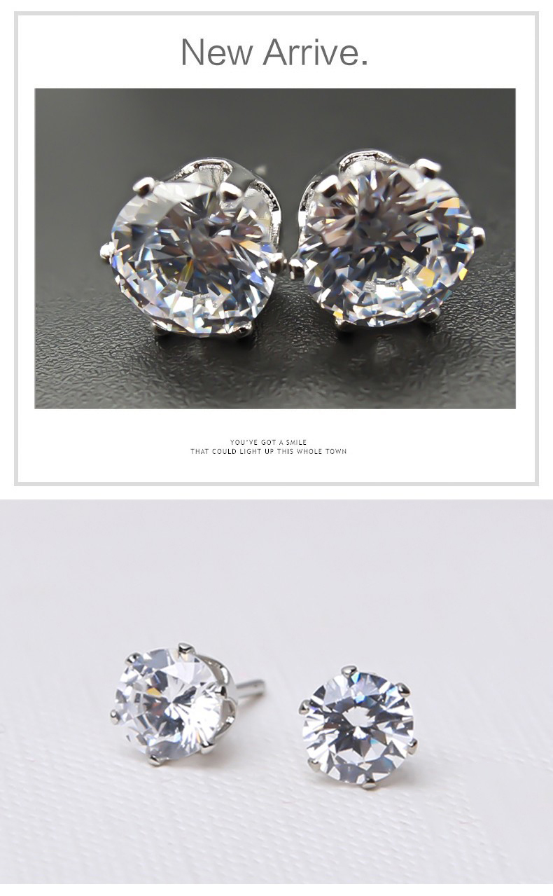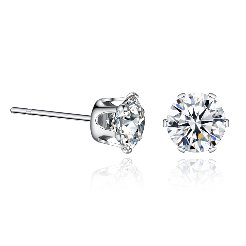 Sterling Silver round clear 7.5mm (2 carat) cubic zirconia earrings