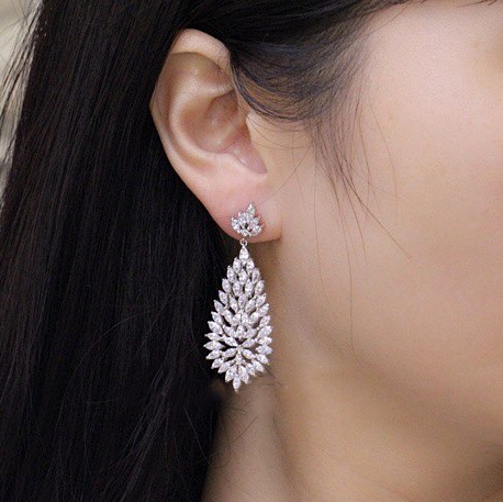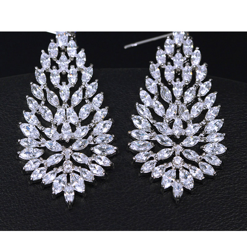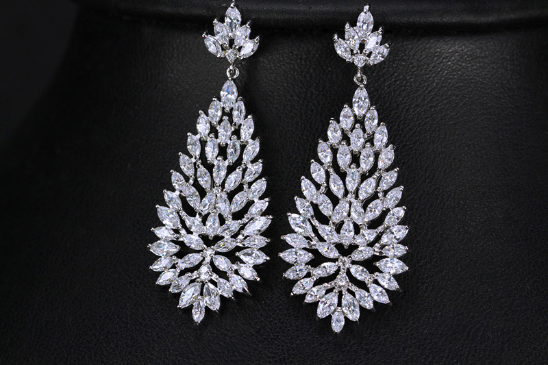 Large micro paved cubic zirconia waterdrop earrings, 5 cm long.