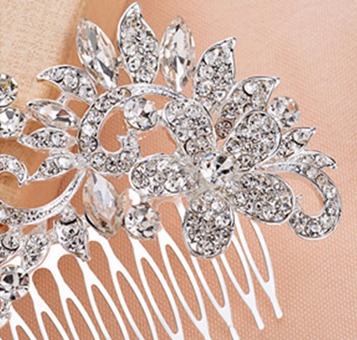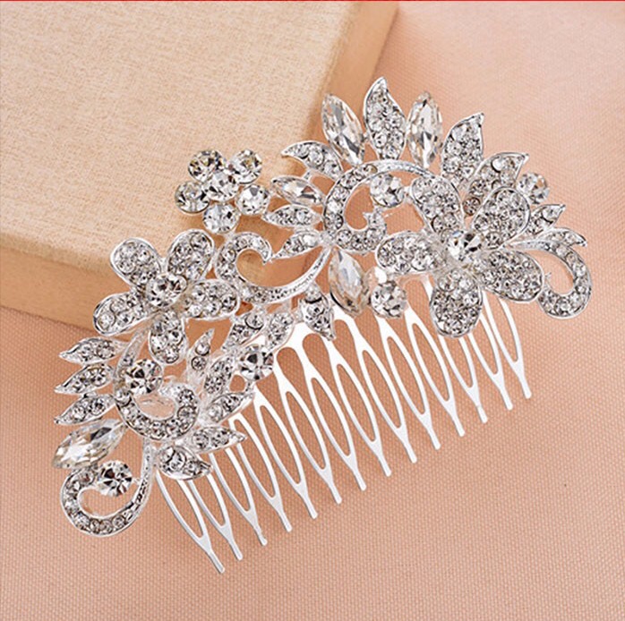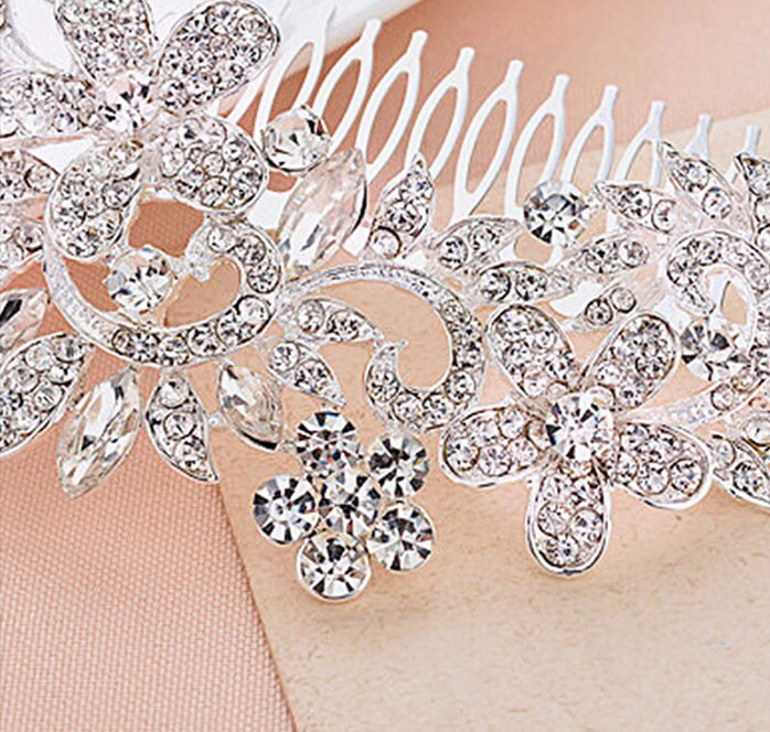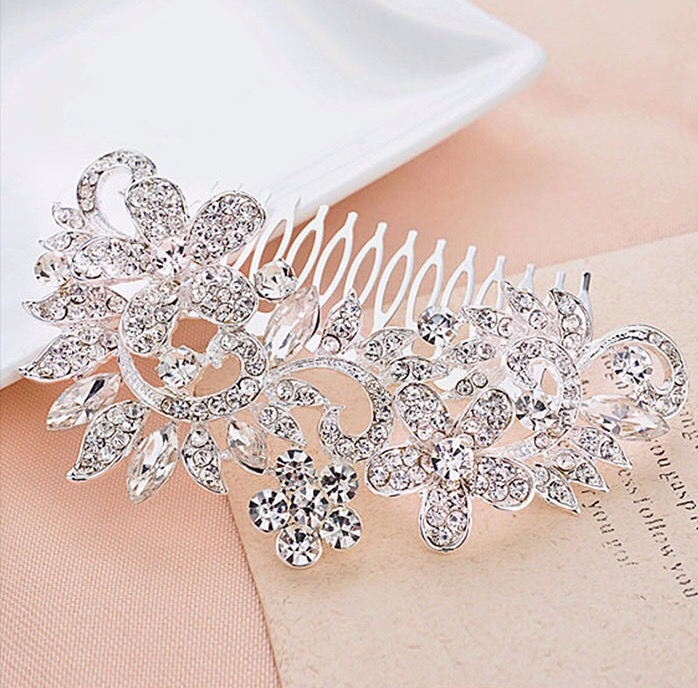 Floral Wedding Cubic Zirconia and crystal Bridal Hair Comb